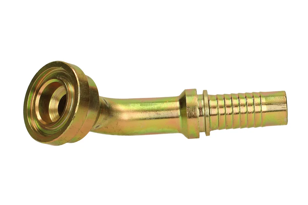 SAE 3000 flange end (SFL), 45° angled, lightweight series. Designed for clamping in hydraulic and industrial hoses using a crimping sleeve suitable for the type of hose. Material: carbon steel, galvanized.