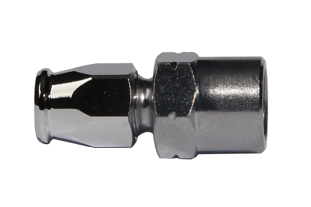Screwed end with internal thread, type FACR, for Teflon brake hoses. Material: carbon steel, chrome-plated.
