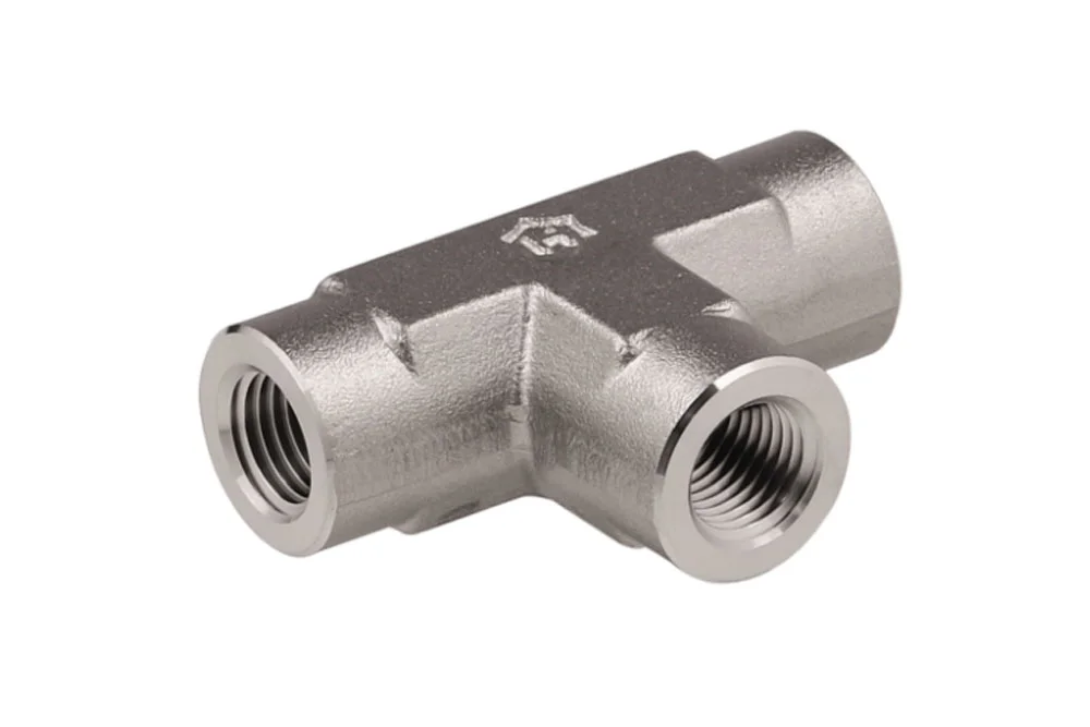 NPT threaded tee, type 101H, intended mainly for the chemical, petrochemical, pharmaceutical, energy, nuclear power, and process engineering industries. Material: AISI 316 steel.