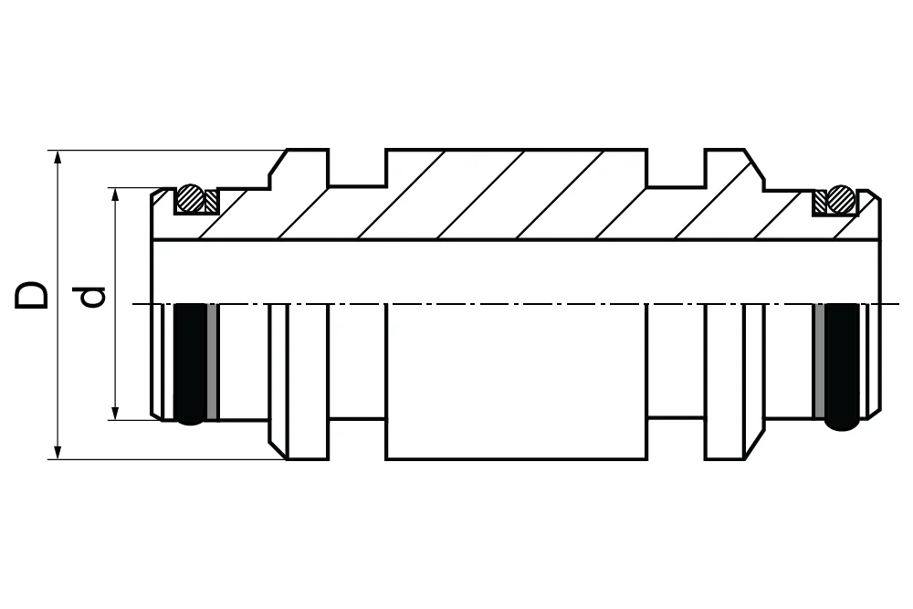 STECKO plug connector for use in hydraulic systems for mining. Material: automatic steel, galvanized. Sealing: NBR (o-ring), Teflon (back-up ring).