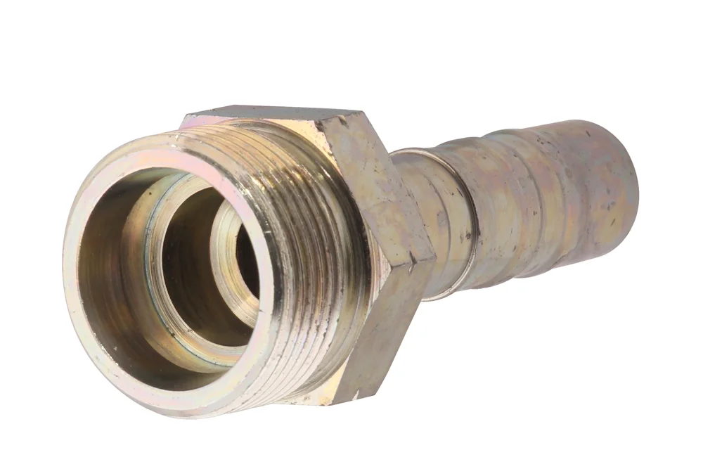 Straight NON SKIVE end fitting with external metric thread, with sealing on a 24° cone, O-ring (CES), heavy series, intended for crimping in hoses type 4SP, 4SH, R13, and R15 using TI-N crimping sleeve. Installation: without cutting the hose rubber. Material: carbon steel, galvanized.
