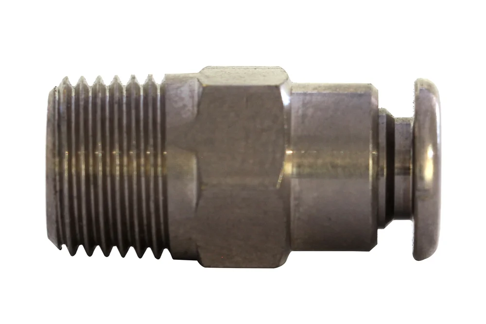 Straight connection with external tapered BSPT thread, series F type R 1C NSF. Designed for the food industry (e.g., for cold or hot drinking water). No plastic components, nickel plating through a special chemical process, and Viton seals ensure high resistance to detergents and other chemicals. Also suitable for various applications in the chemical, pharmaceutical, electronic industries, and in medicine. Operating temperature: from -20°C to +150°C. Working pressure: 16 bar. Vacuum: 0.99 bar. Material: nickel-plated brass. Seal: Viton (approved for food contact by the FDA). Standards: NSF/ANSI 51, NSF/ANSI 61.