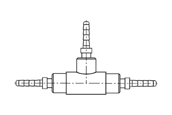 Tee (coupling) with sleeves for thermoplastic hose FR 5 DN2 (1/12″). Material of the tee: brass. Material of the sleeve: brass.