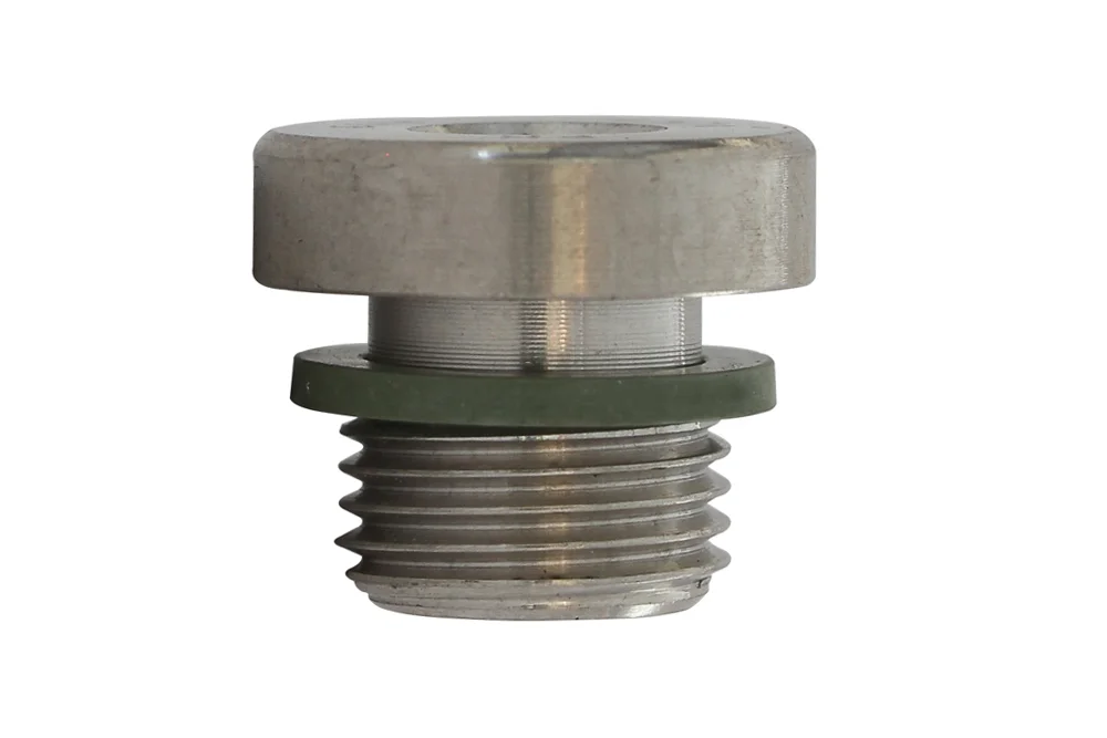 DIN 2353 plug, type VSTI-BE for hex key: external BSP thread (sealing DIN 3852 type E – elastomer gasket with rectangular cross-section). Safety factor 4:1. Material: AISI 316 steel.