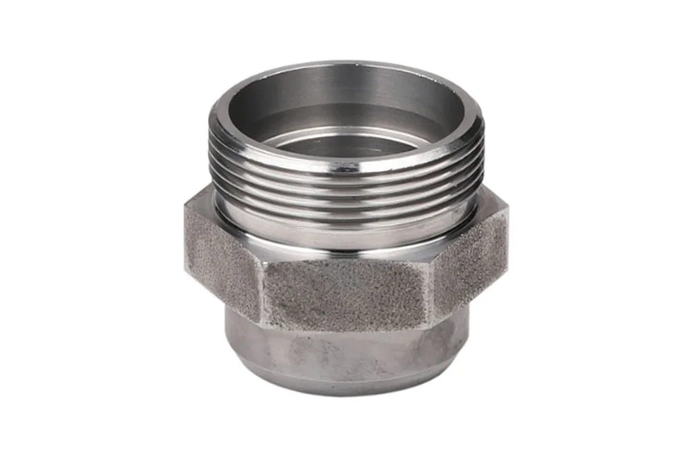 DIN 2353 fitting for welding, type AS: 24° DIN 2353 socket with external metric thread and welding connection. Available as: L (light series), S (heavy series). Material: oiled carbon steel.
