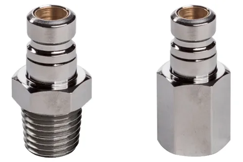 - single shut-off quick release couplings, with a valve built into the socket as a standard, this valve opens when the plug is inserted, the plug has no valve;