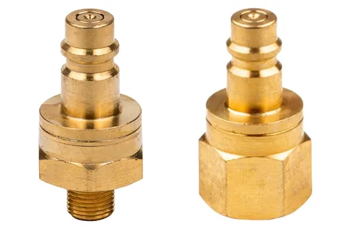 - single shut-off quick release couplings, with a valve built into the socket as a standard, this valve opens when the plug is inserted, the plug has no valve;