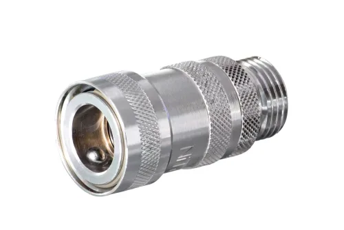 - single shut-off (with a shut-off valve in the socket, the valve opens when the plug is pushed into the socket; the socket with the valve must be mounted at the feed end/upstream).