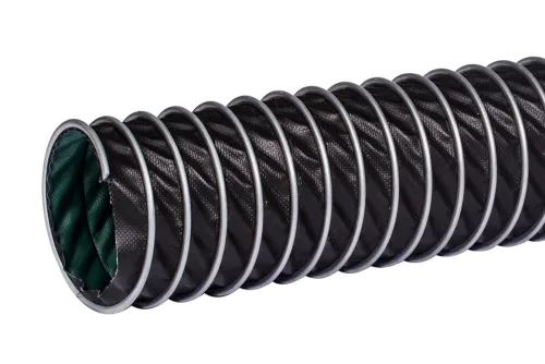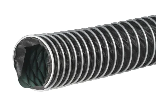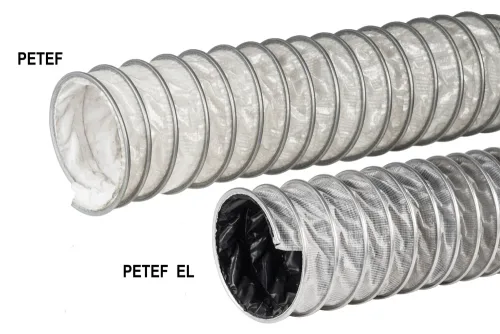 Lightweight, flexible hoses for the extraction of aggressive chemical vapours, solvent vapours and gases. Manufactured from: polyethylene (PE), polypropylene (PP) and fabrics coated with plastics: Teflon (PTFE), PVC, PE, CSM (Hypalon) and FKM (Viton), reinforced with steel wire helix or wire and steel strip helix (CLIP hoses). Available hose versions: antistatic according to TRBS 2153, hardly inflammable (DIN 4102 B1), food approval (FDA), and on special request, with stainless steel helix.